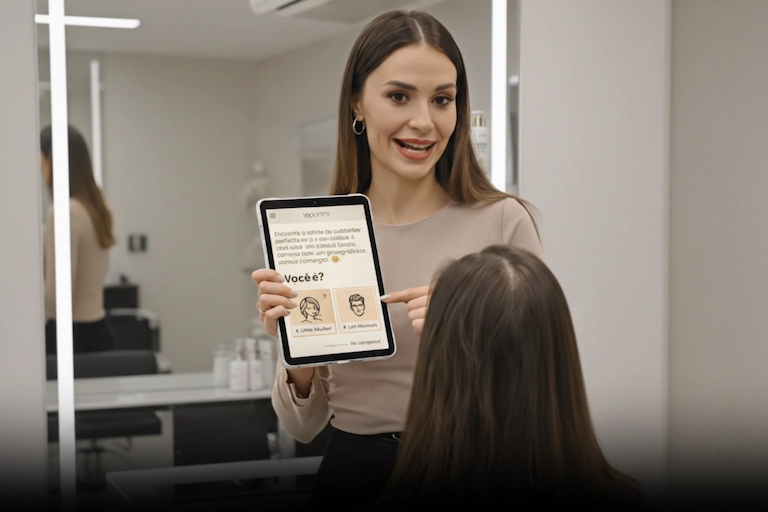 A Leportini é uma marca de cosméticos capilares focada em cuidado e personalização. O diagnóstico existe para orientar seu próximo passo com clareza — antes de você investir no produto errado.